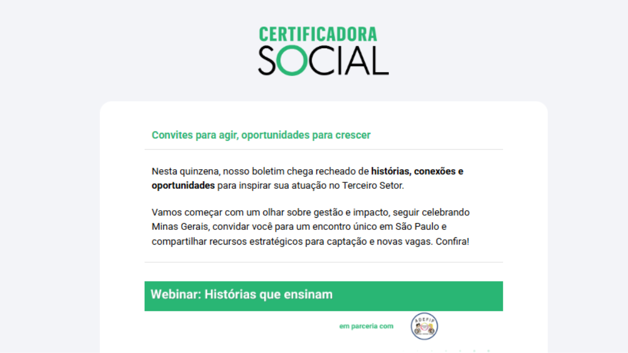 Agora, como Certificadora Social, ampliamos nossa atuação e reafirmamos nossa missão: avaliar, promover, apoiar e destacar organizações, pessoas, negócios e governos que atuam com excelência e propósito na construção de uma sociedade mais justa, transparente e responsável.